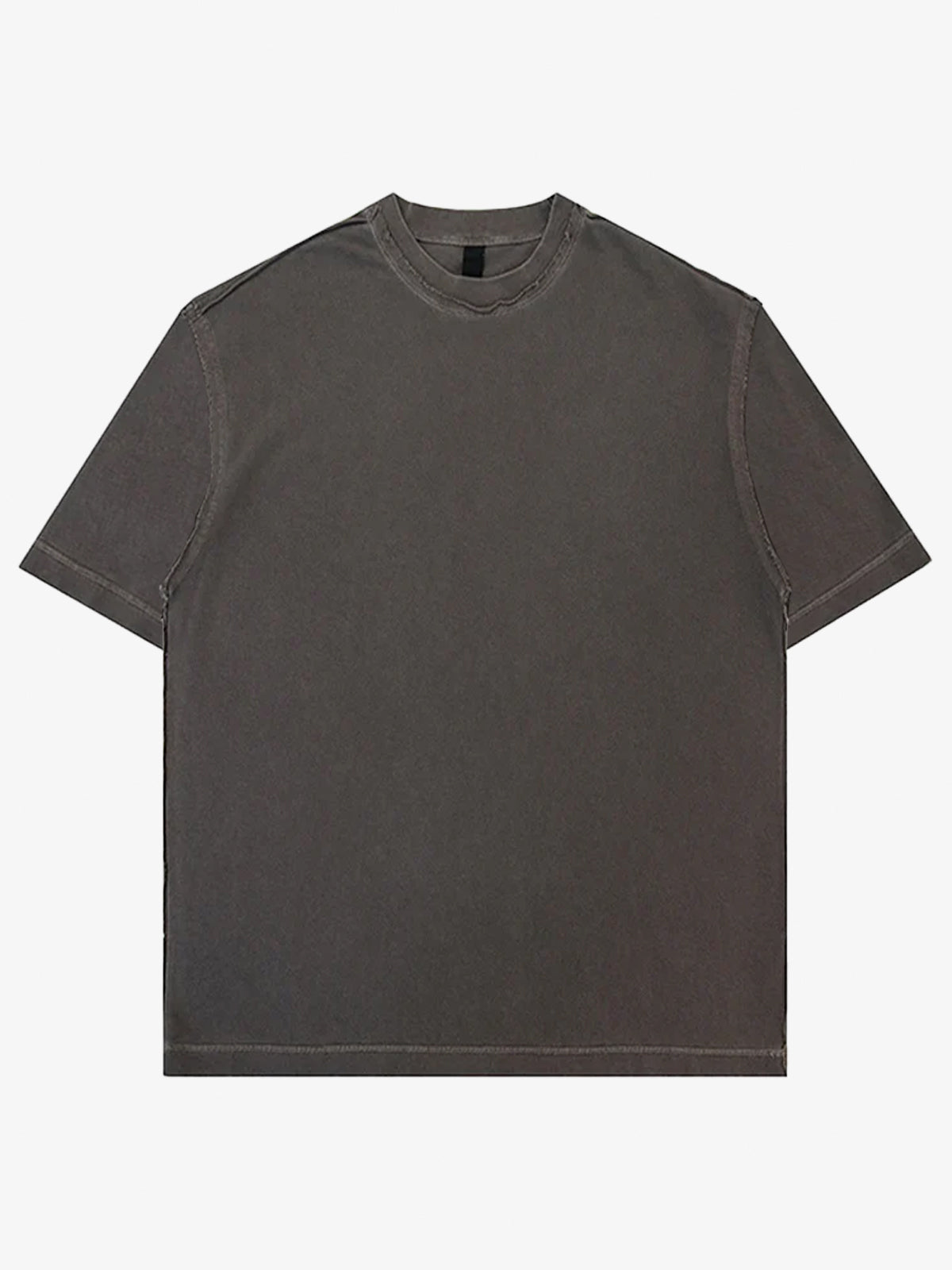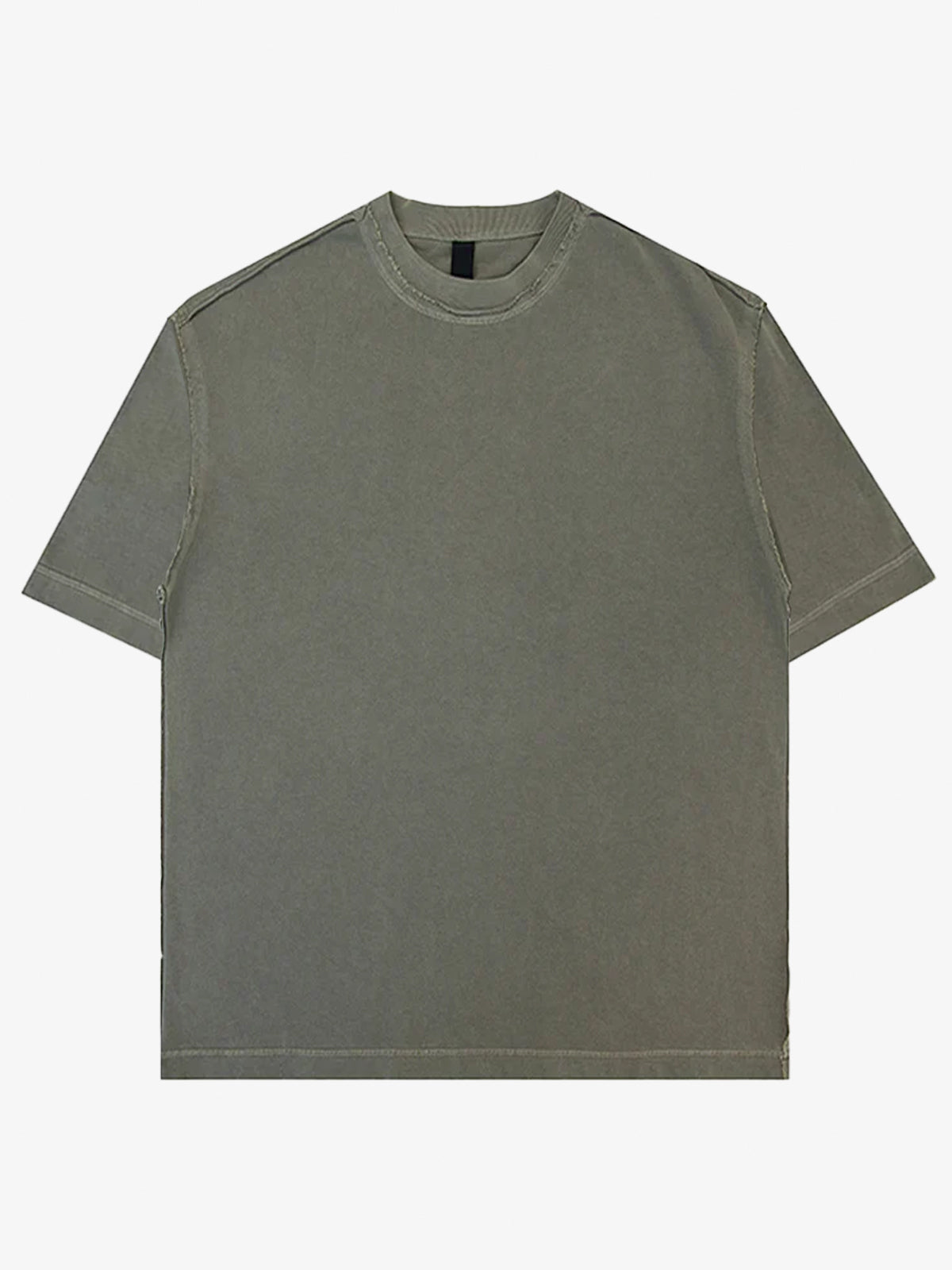 The subtly ribbed neckline adds a refined touch, while the design remains basic. Made primarily from heavy-weight cotton, its soft texture is gentle on the skin and boasts excellent sweat-absorbing and moisture-wicking properties, ensuring a fresh feel. The washing process creates a vintage look, adding a casual, workwear-inspired vibe. Perfect for daily casual wear or relaxed weekends.