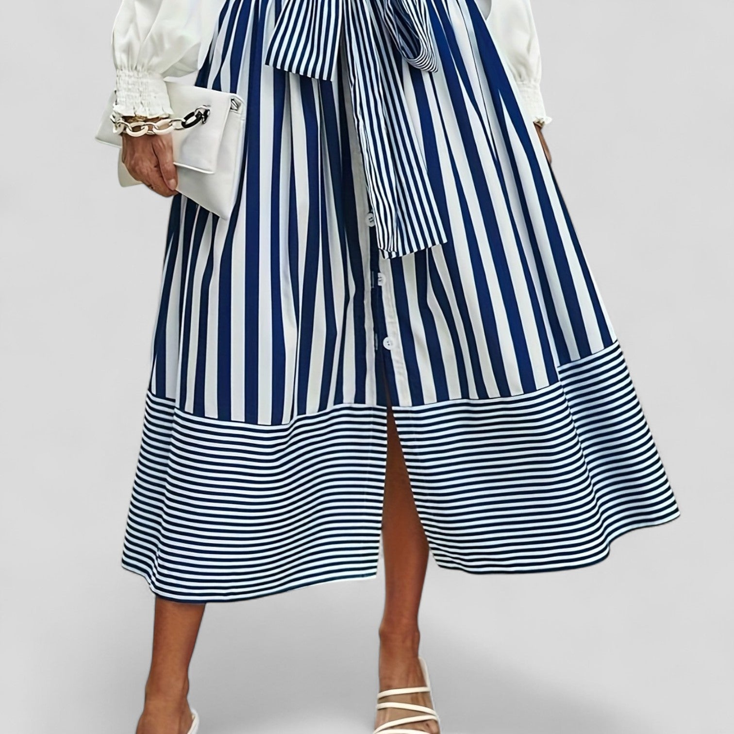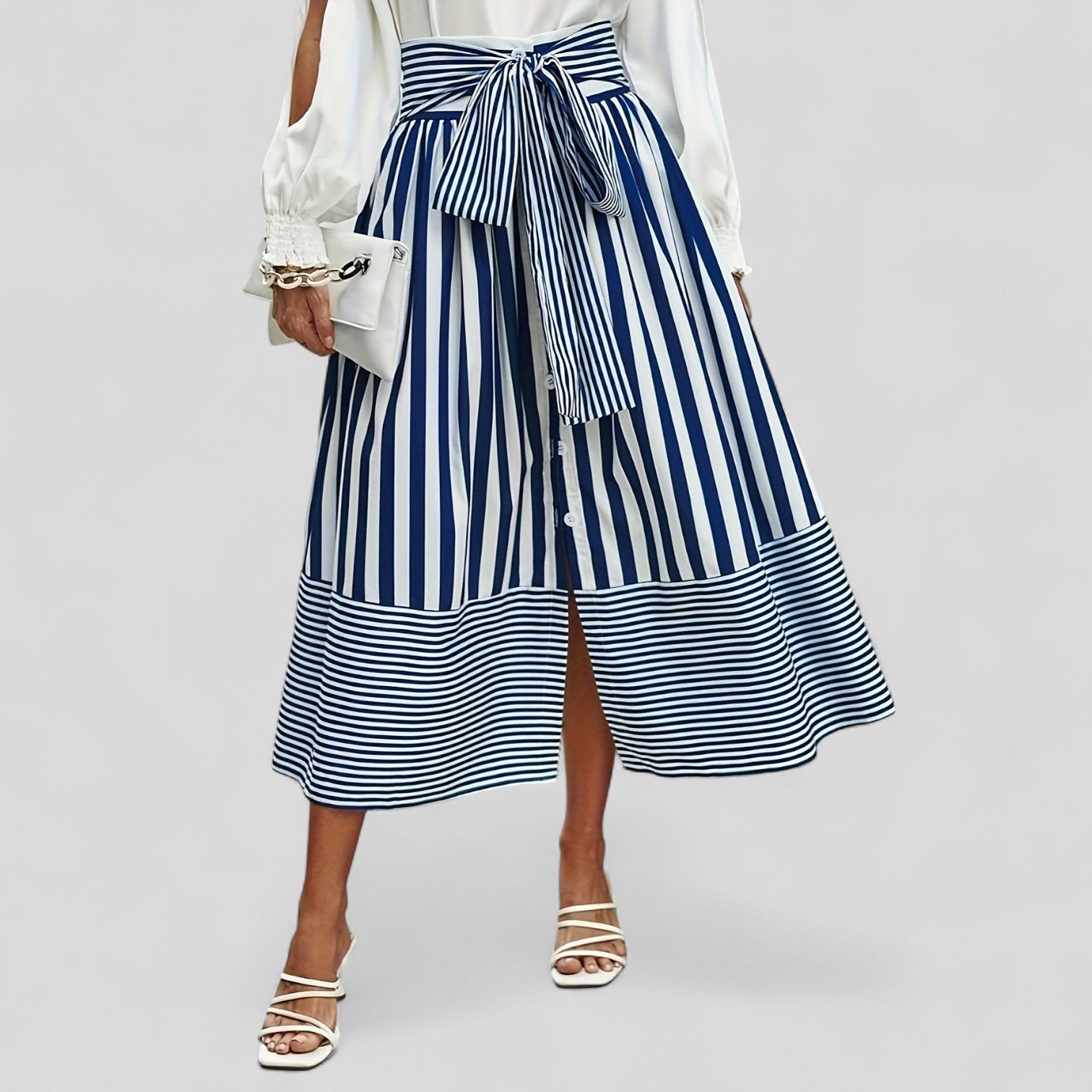 Descubre la elegancia y comodidad de nuestra falda maxi con cintura elástica, diseñada para resaltar tu estilo en cualquier ocasión. Su corte fluido y adornos distintivos hacen de esta prenda un imprescindible en tu guardarropa.