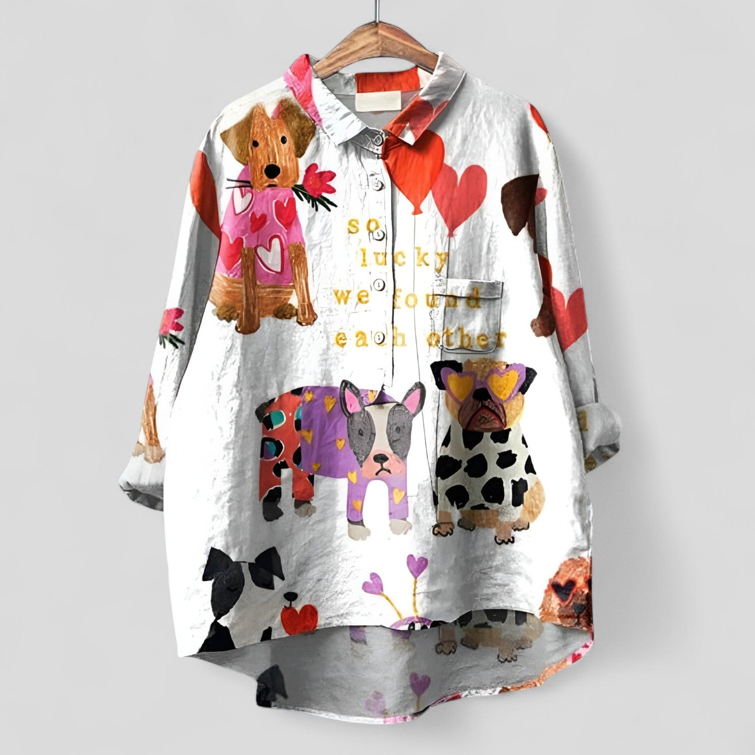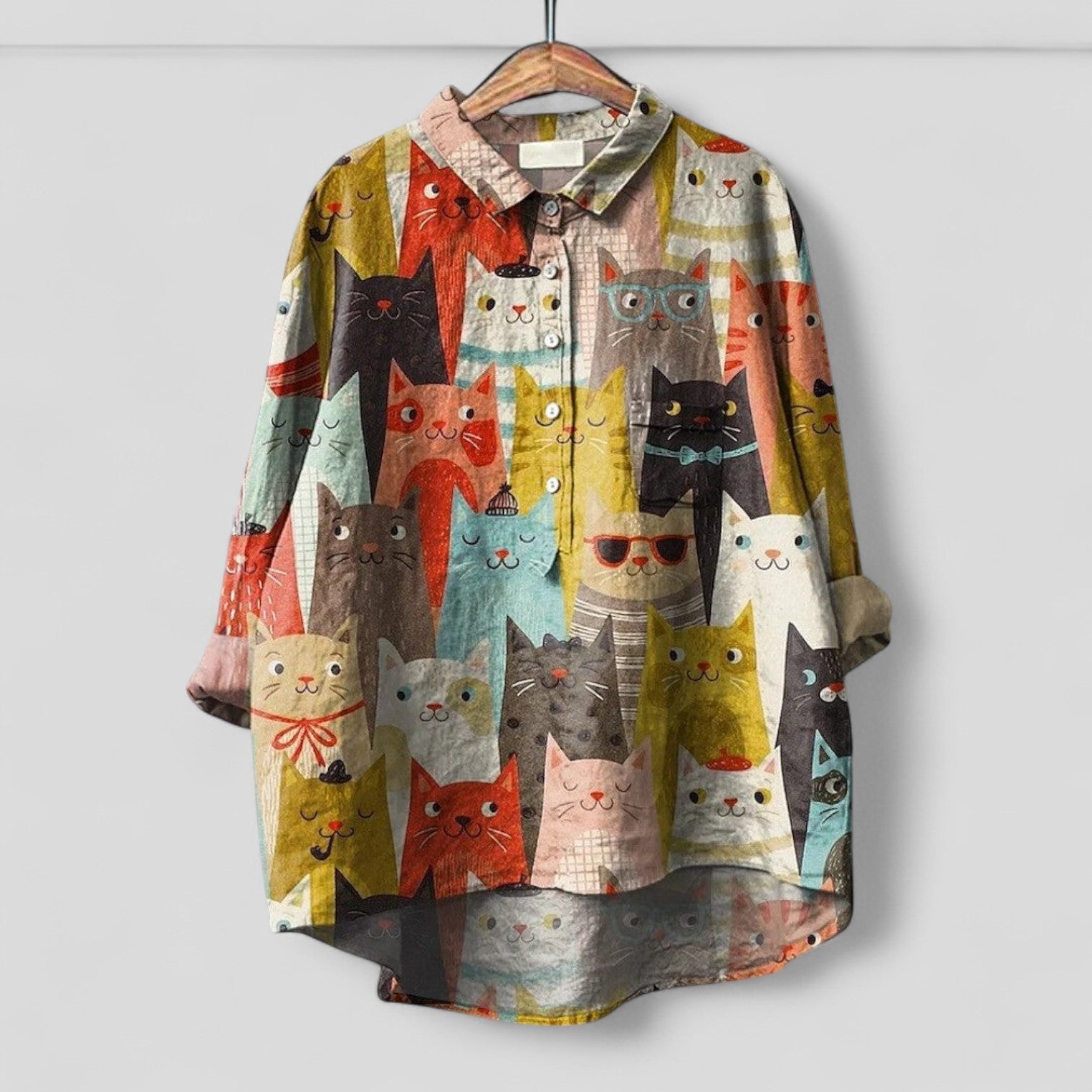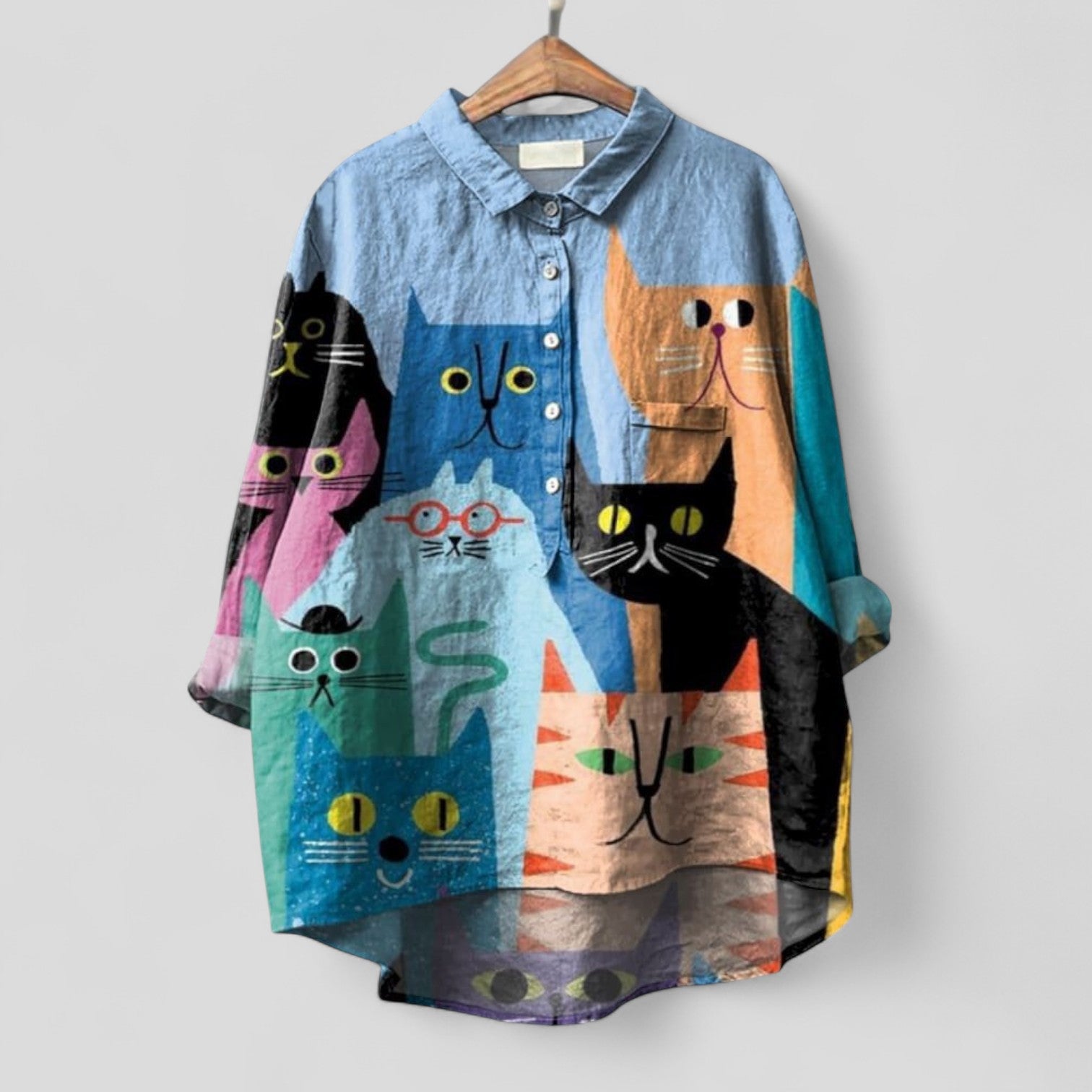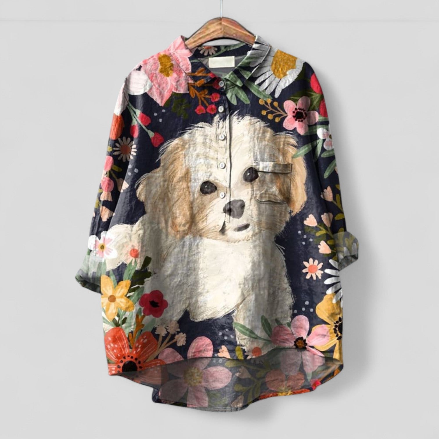 Blusa Oversize Casual de Mezcla de Lino: una prenda ligera con un encantador motivo animal y una botonera completa.