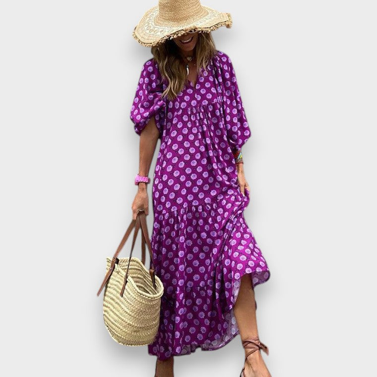 Isa Luna | Vestido maxi sin espalda con estampado floral